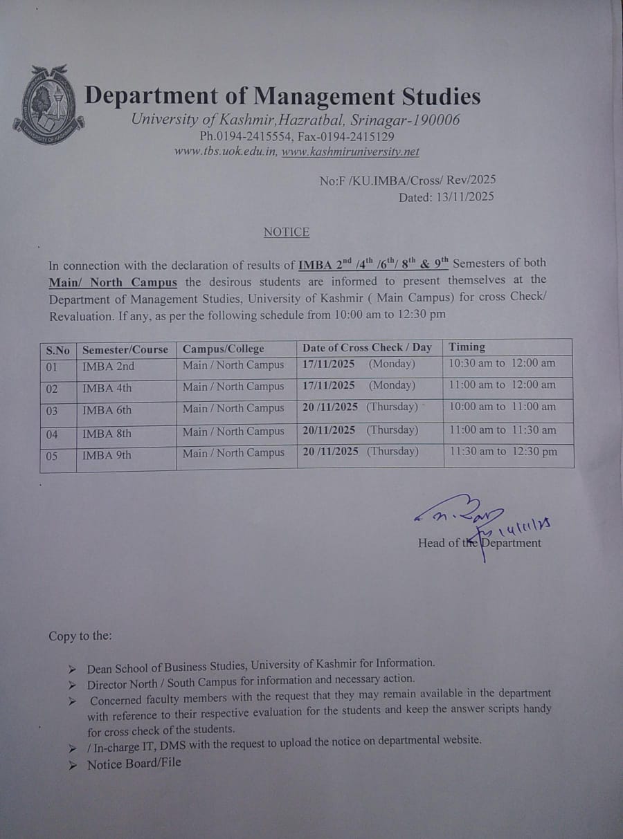 Important notification for IMBA 8th semester examination (Online mode).; Dated: 1-3-2021